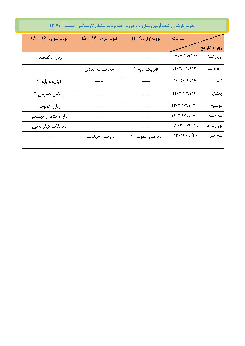 اصلاحیه برنامه امتحانات نیمسال دوم ۱۴۰۵-۱۴۰۴