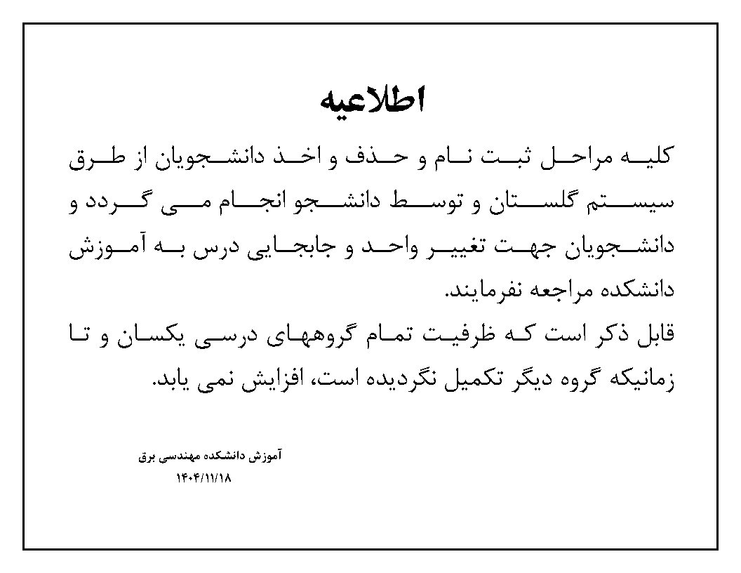 قابل توجه دانشجویان کارشناسی ورودی ۱۴۰۴